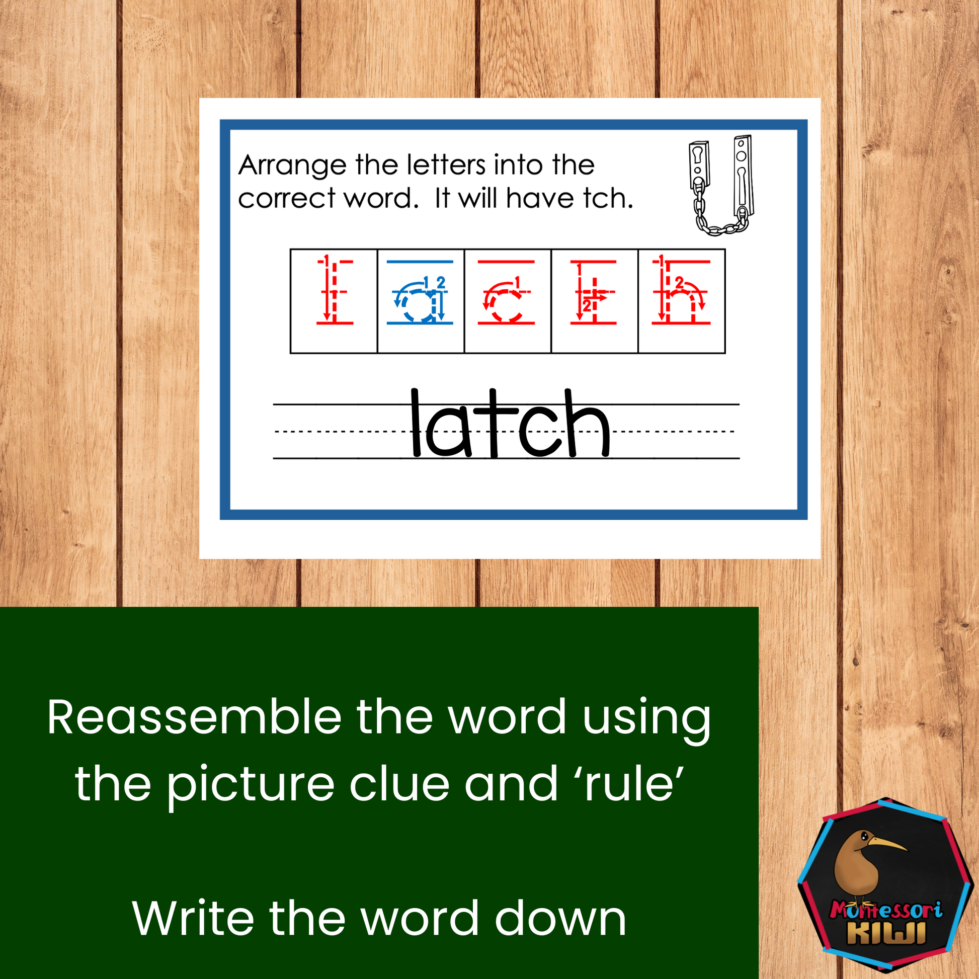Modern Montessori Reading: -dge and -tch reassemble the word for trigaph endings (literacy)