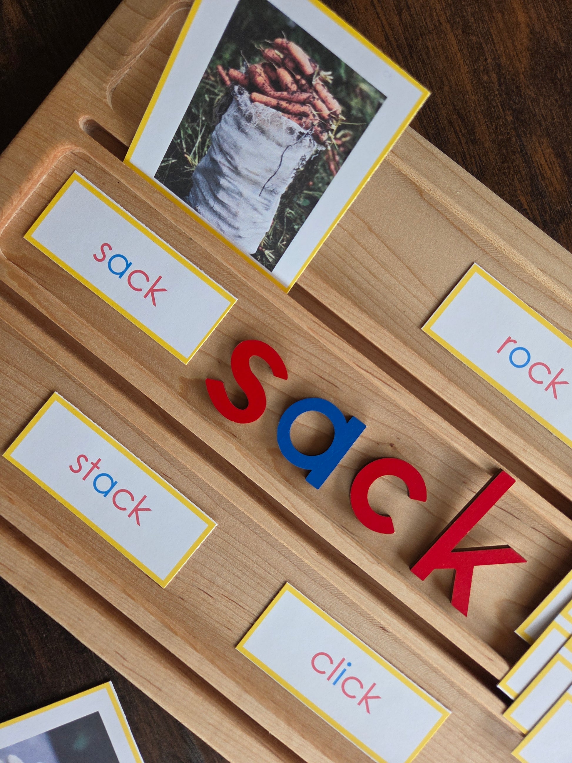 ck words have a short vowel followed by a ck at the end of a one syllable word. Using the traditional Montessori preschool or elementary ideas students match a picture to the word.