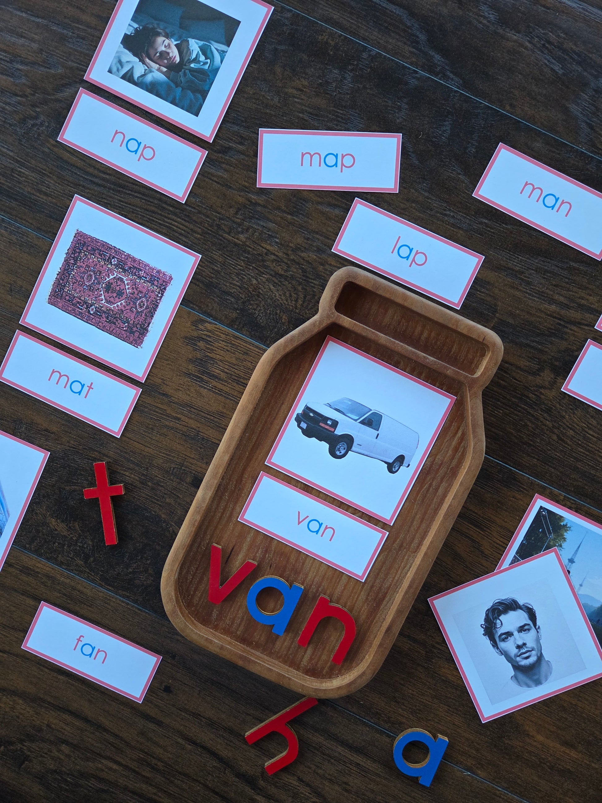 Modern Montessori Reading SOR CVC picture to word match continuous blending (literacy)