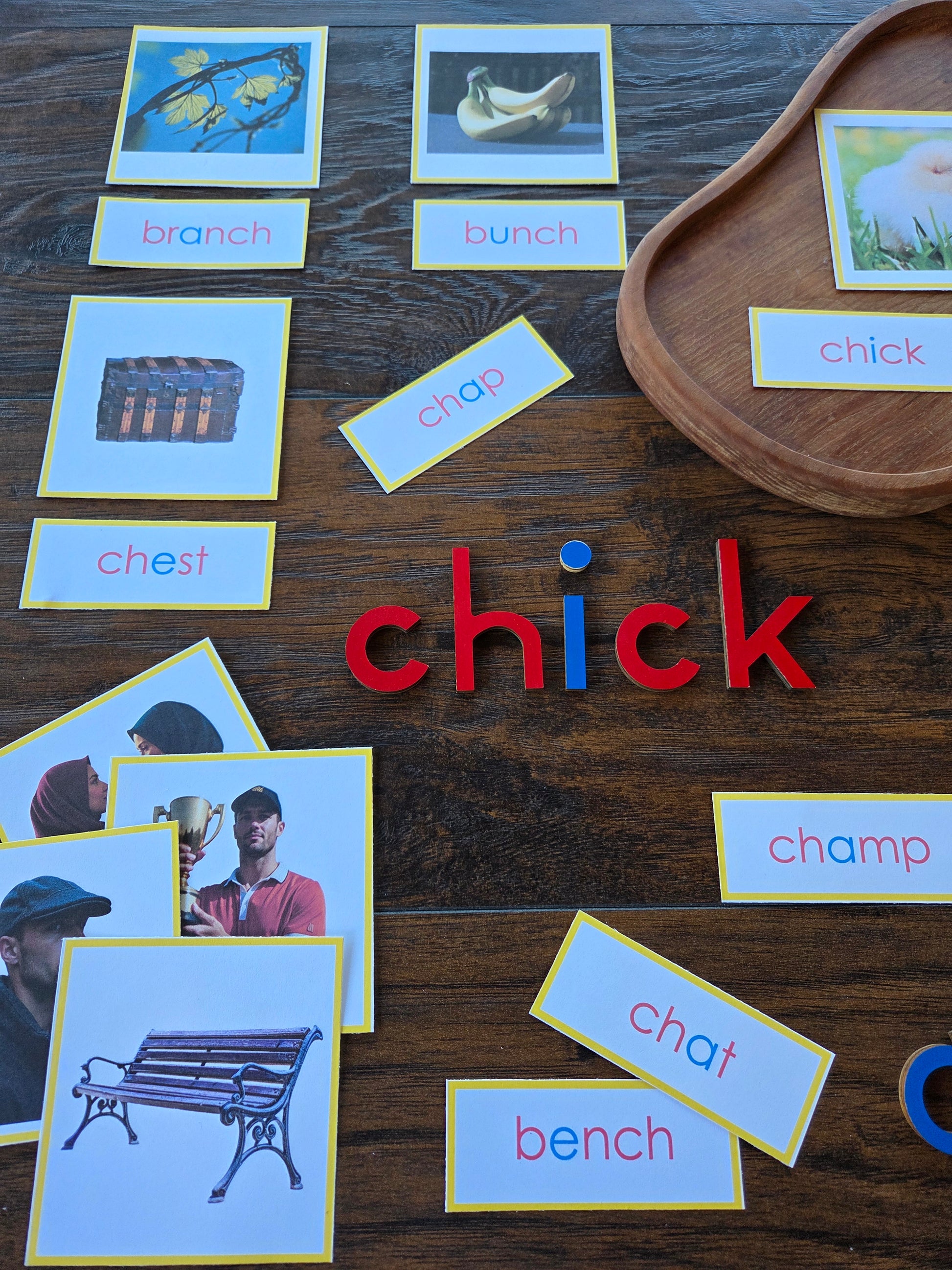 Modern Montessori Reading SOR Digraph picture to word match (literacy)