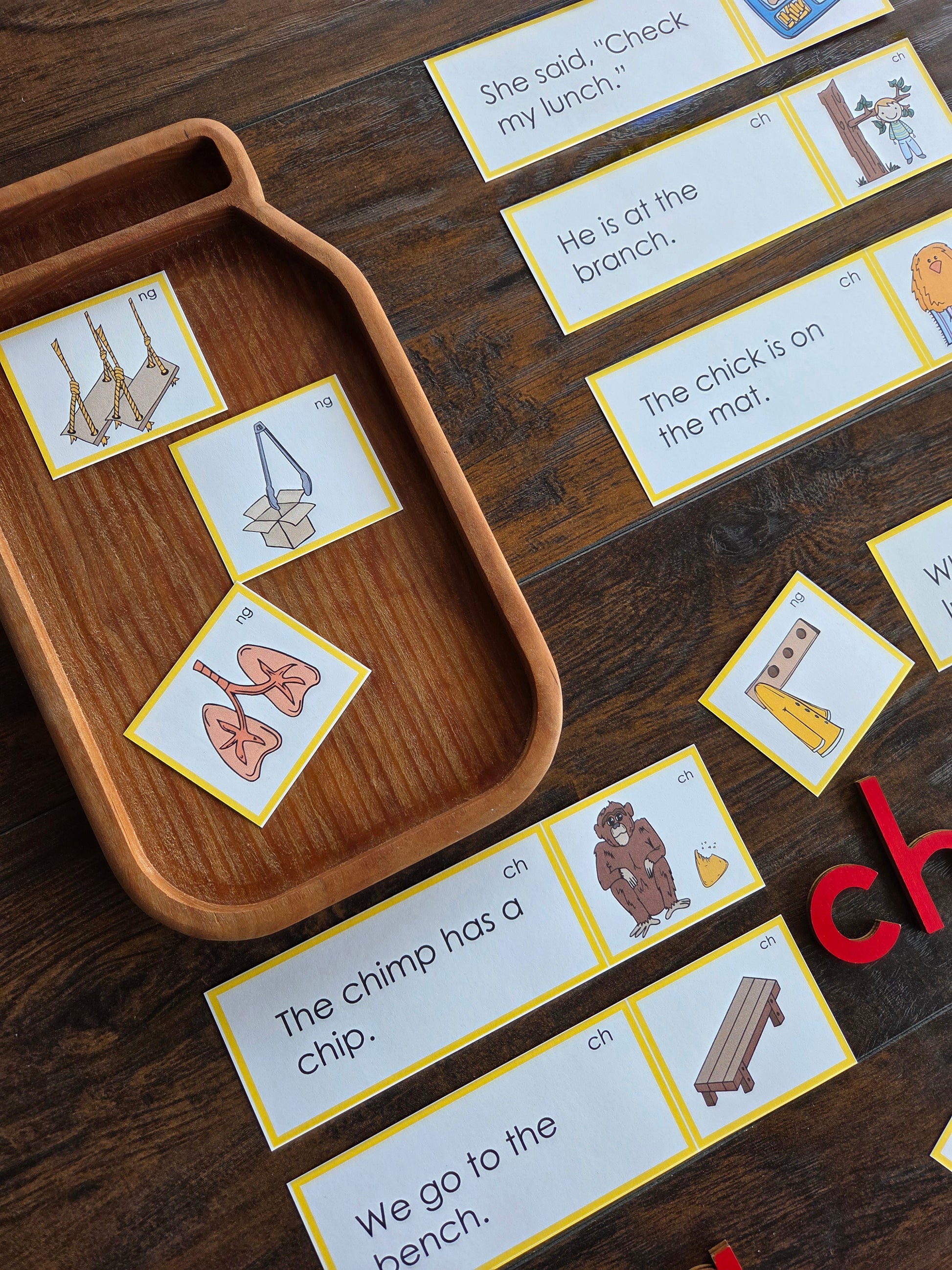 Modern Montessori Reading SOR Digraph th ch sh ng picture to sentence match (literacy)