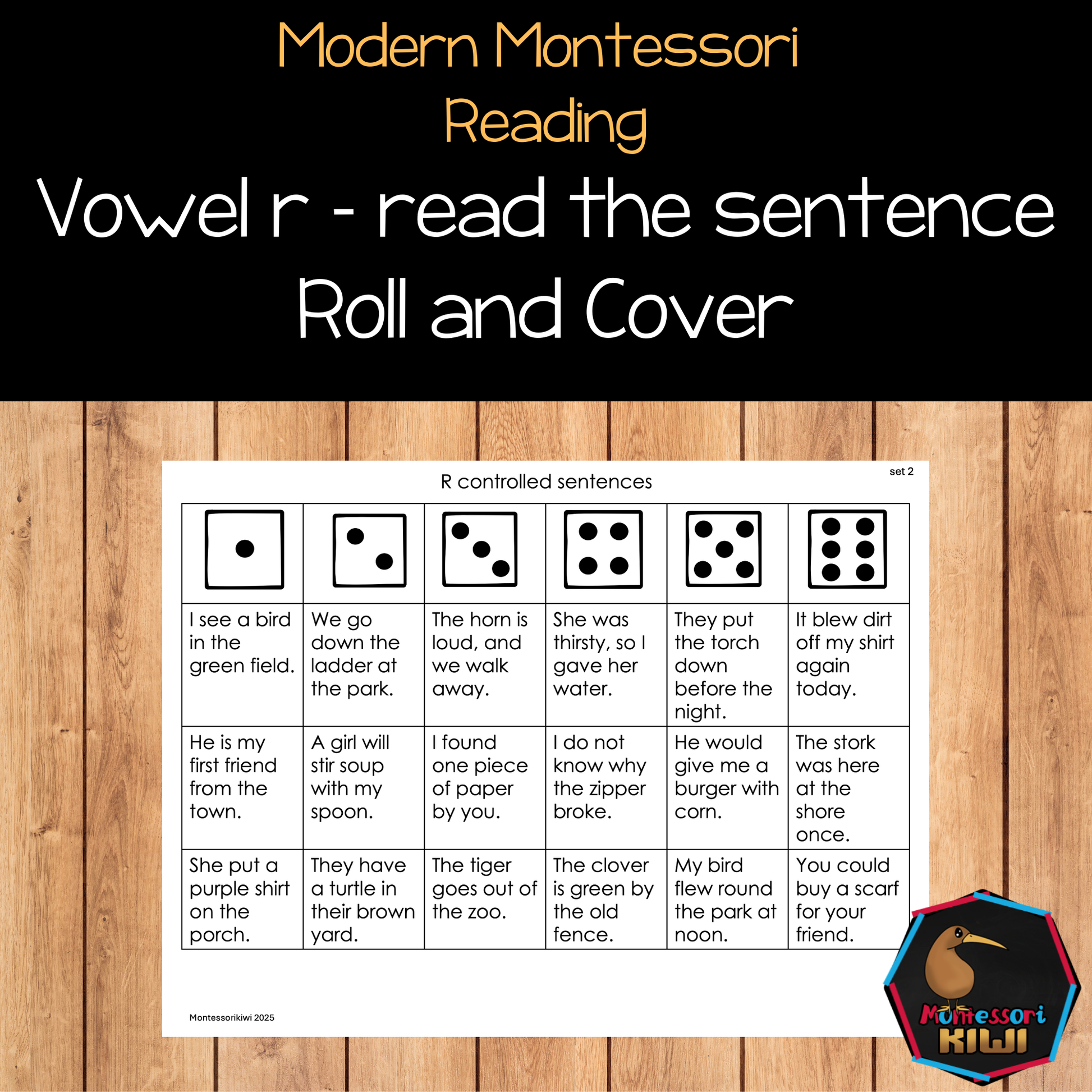 Modern Montessori Reading: Vowel R Roll and Read the Sentence