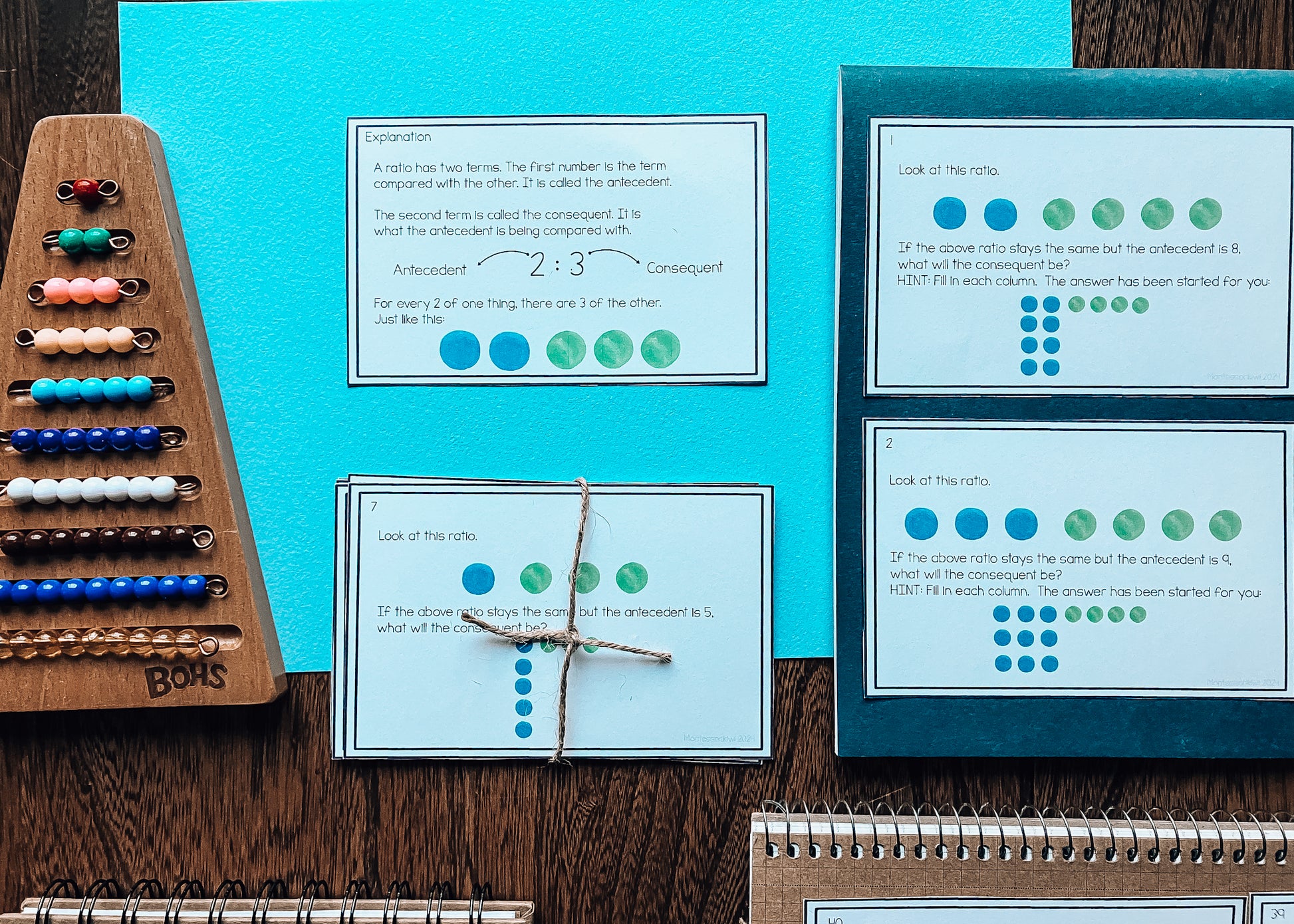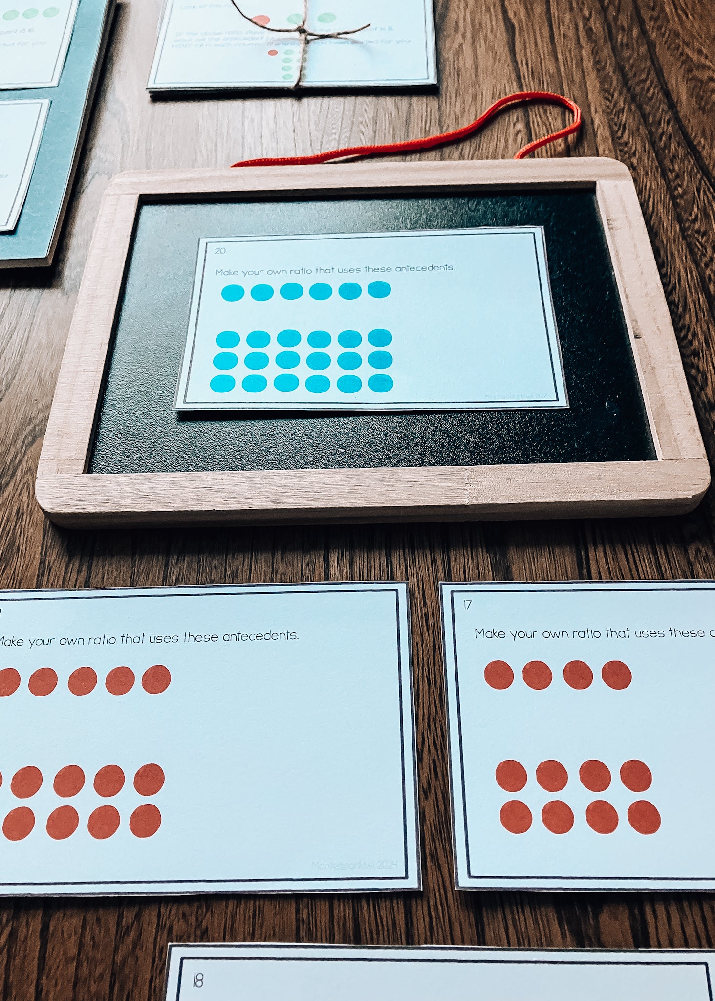 These versatile cards are perfect for hands-on learning and can be paired with a Montessori peg board or used with pompoms for interactive practice, designed for home or classes of upper elementary or 9-12 year olds. Some questions are color-coded to match the peg board, making it easy for students to connect concepts visually.